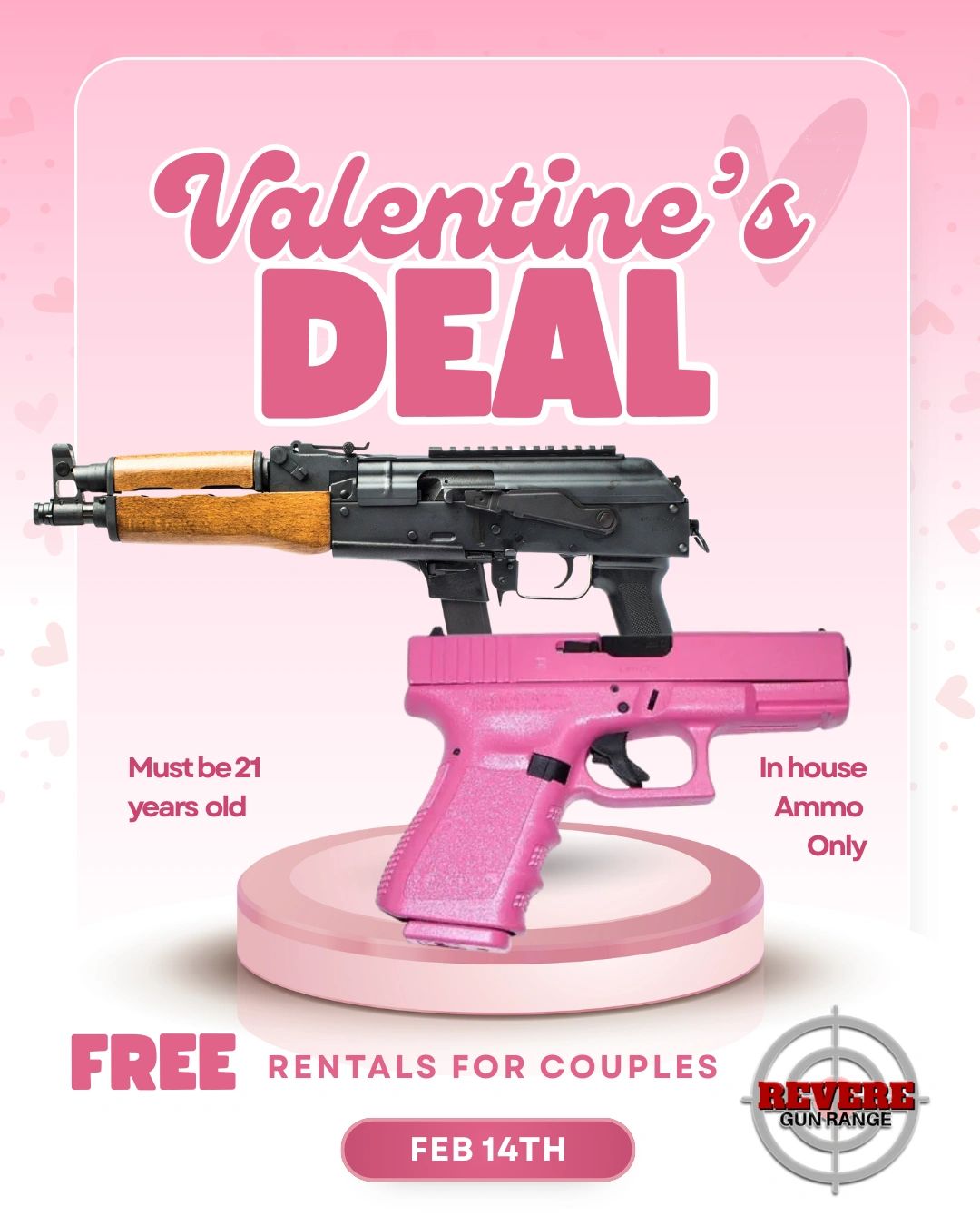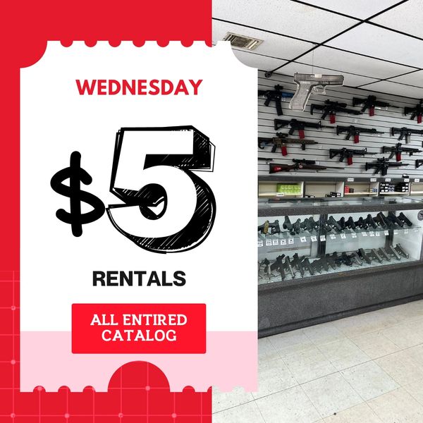 Any rental is available for $5. (Must be 21 Years old + in order to rent, must be at least a party of two people or have your own firearm, must purchase Revere Range ammo)